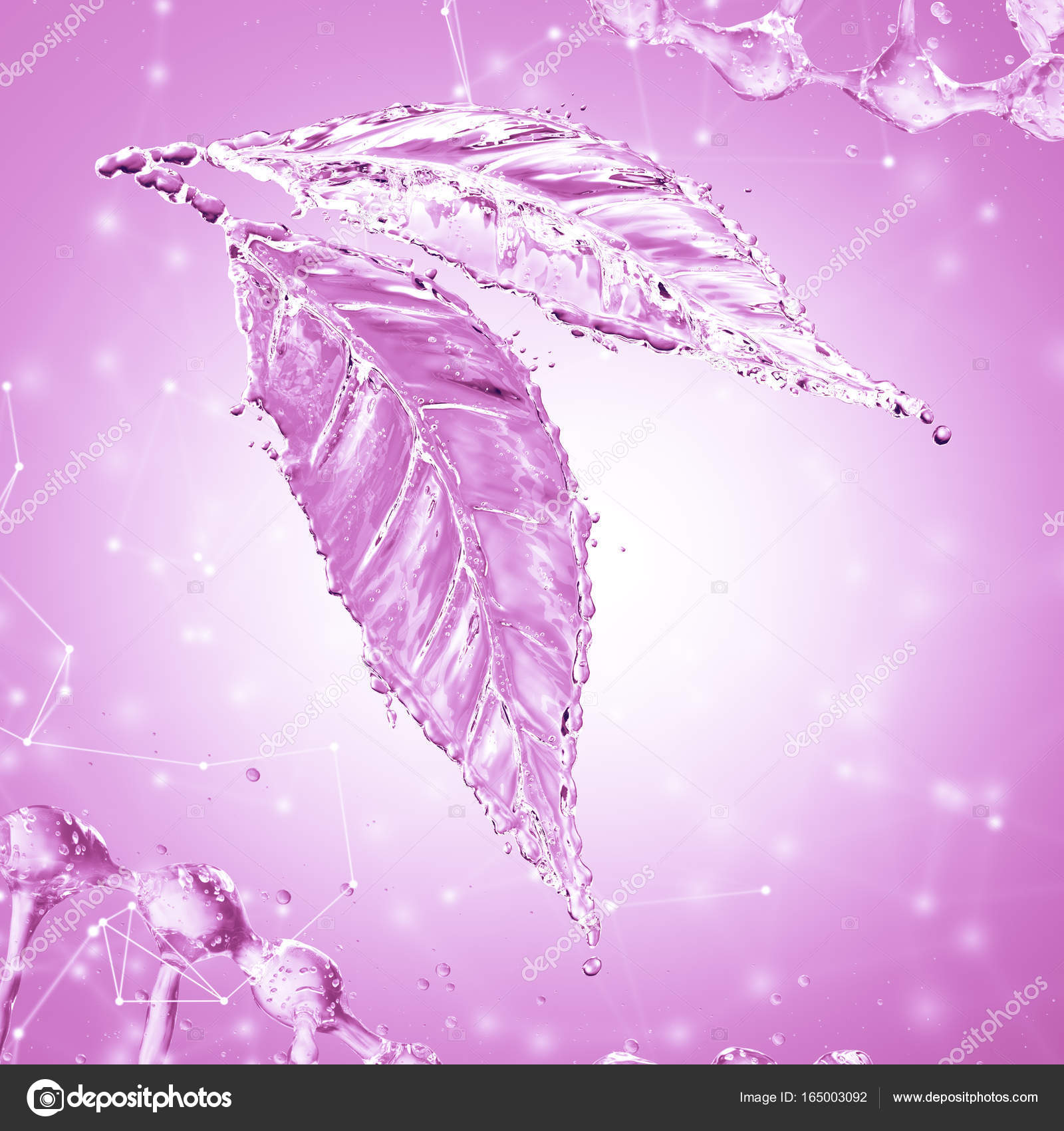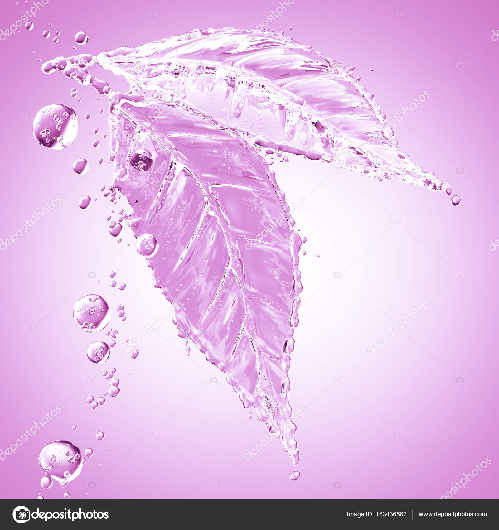 Feuille Faite D Eclaboussures D Eau Couleur Rose Rendu 3d