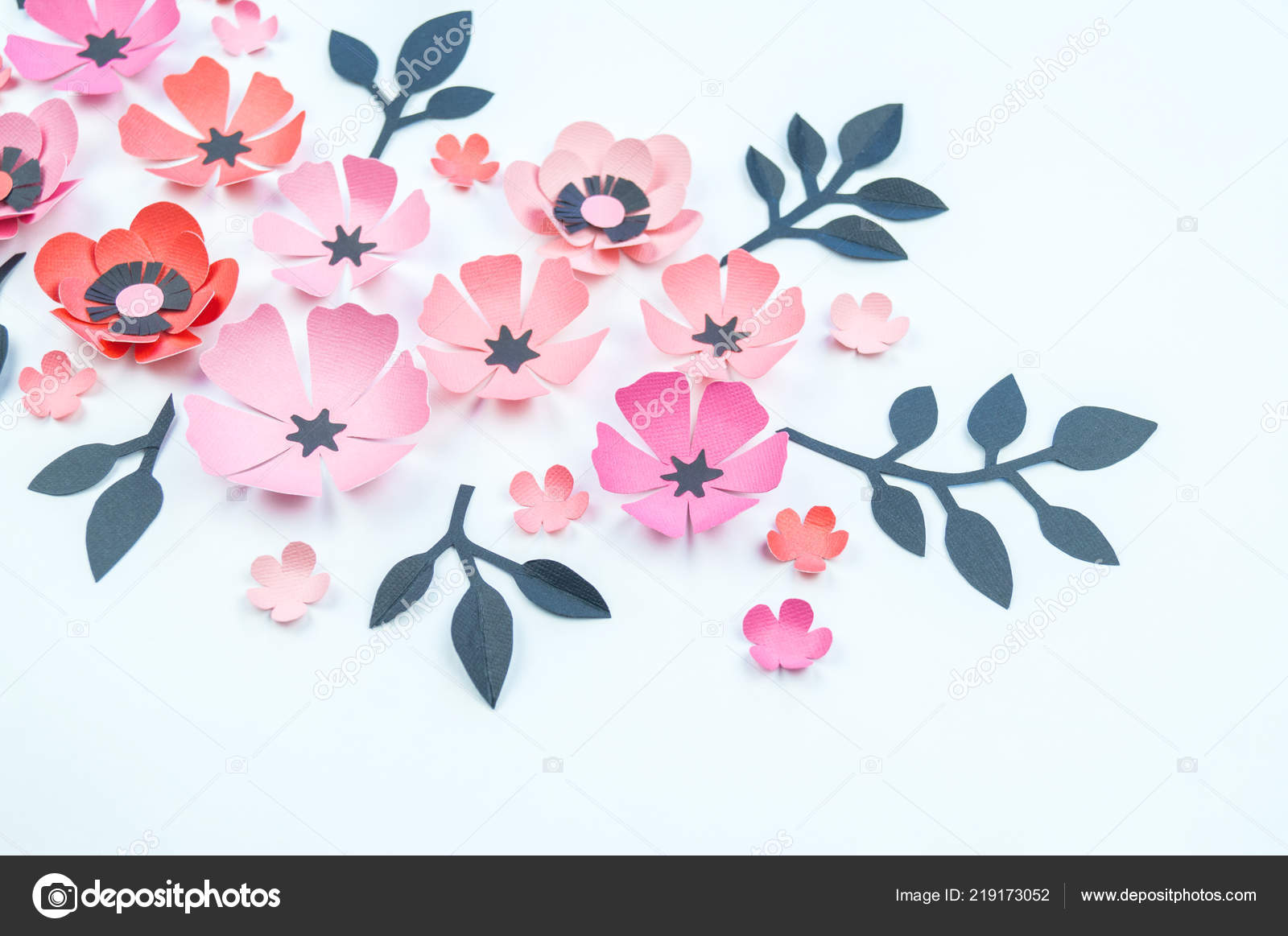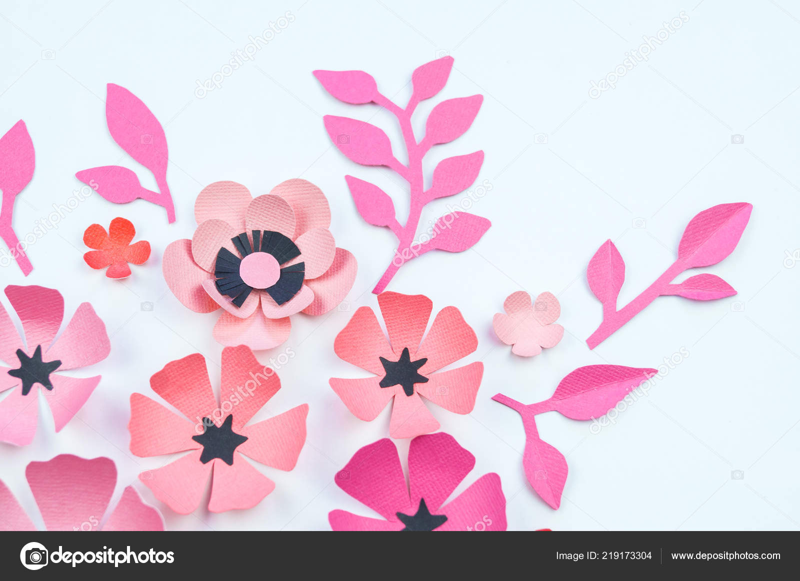 Fleur Feuille Couleur Rose Noire Papier Travail Manuel Passe