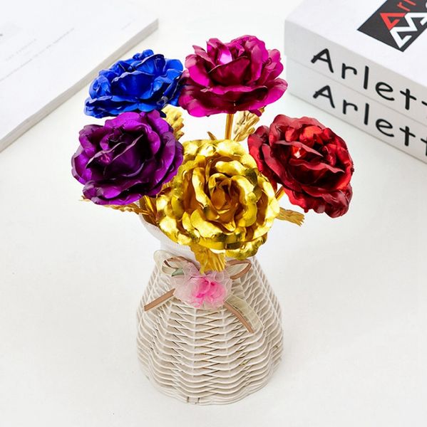 Acheter Feuille D Or Rose Rose Or 24k Feuille Artificielle Plaque Romantique Fleur De Mariage Partie De Fete Faveur 5 Couleurs En Option Yw2778 De