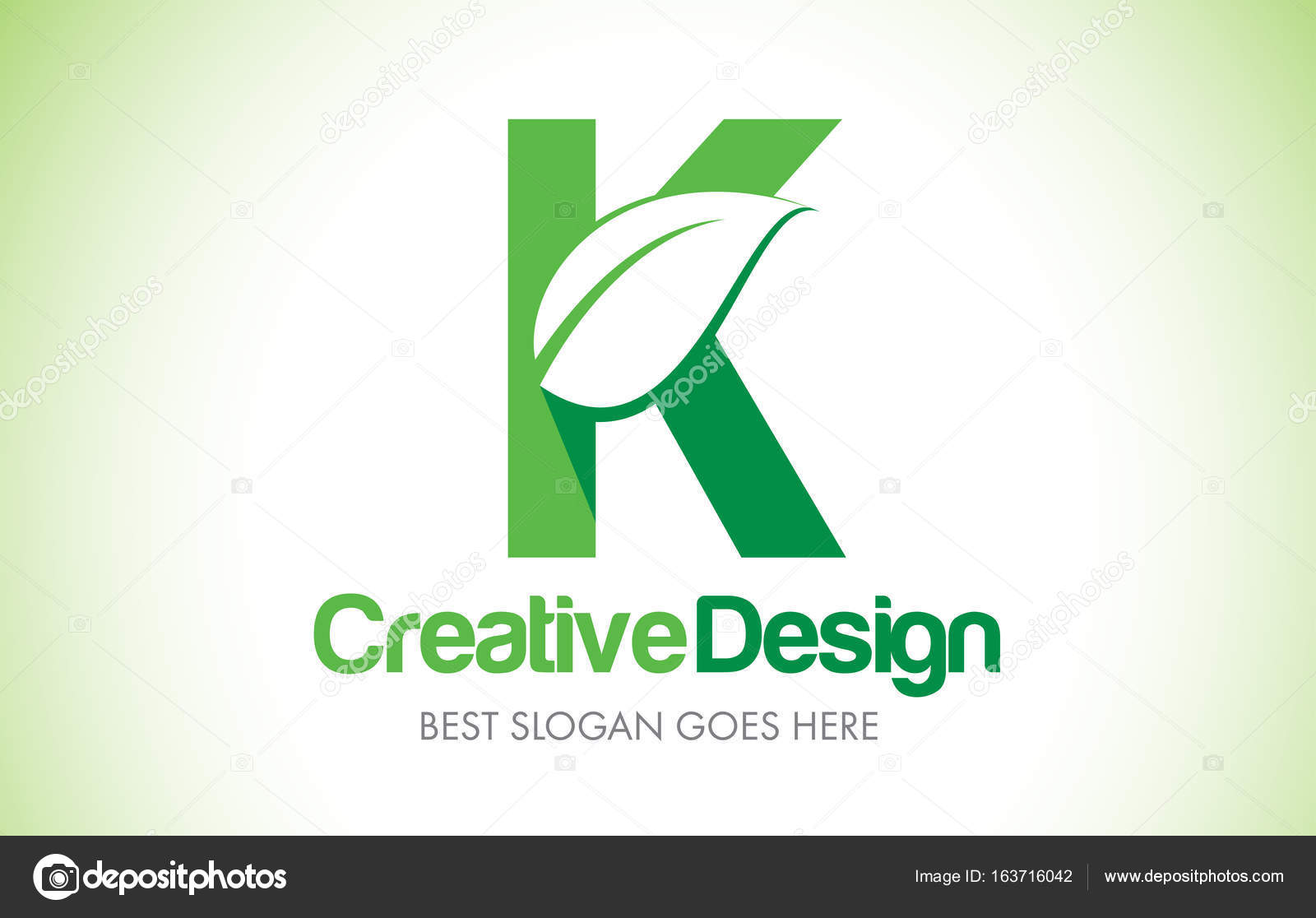 Logo Design Lettre K Leaf Feuille Verte Avec Contours Vector