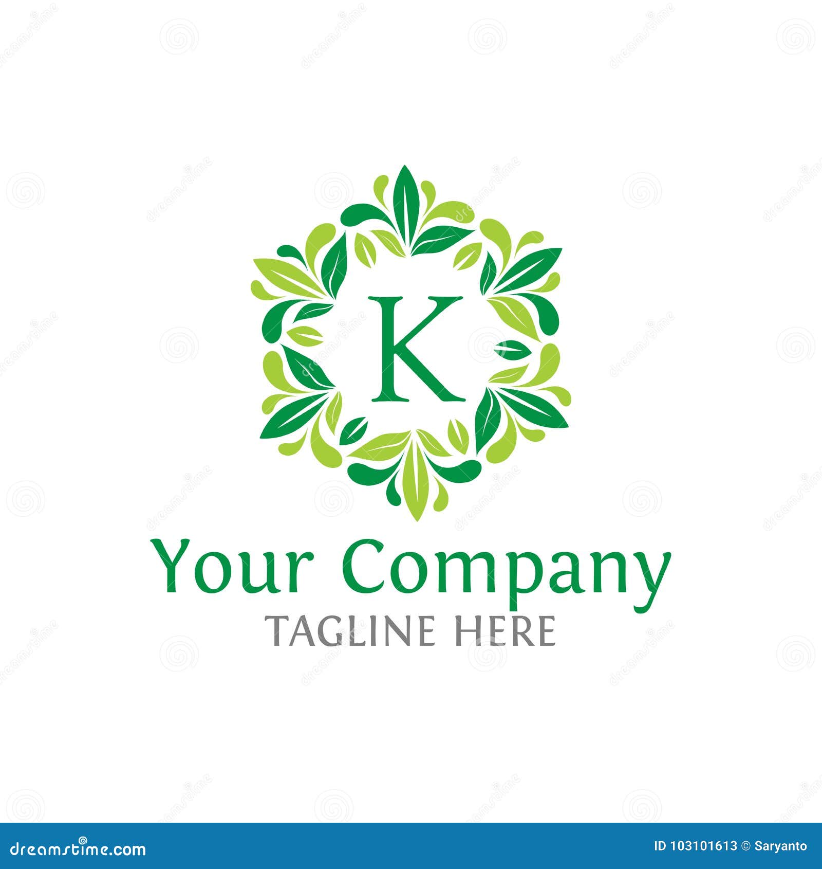 Logo Avec Lettre K De Couleur Vert Decore De Feuilles Vertes