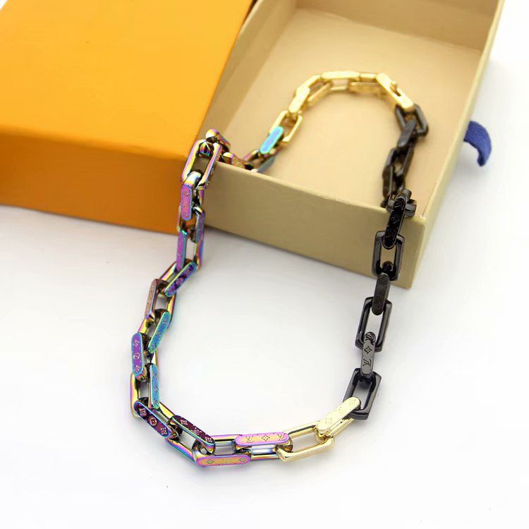 Acheter Mode Nouveau Arriver Hommes 316l Titane En Acier Graver Quatre Feuille Fleur Colore V Lettre 18 K Plaque Or Epais Colliers De 55 28 Du